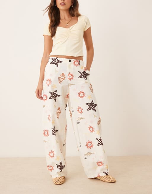 ASOS DESIGN - Pantaloni a cilindro in misto lino con stampa ispirata alle vacanze in coordinato