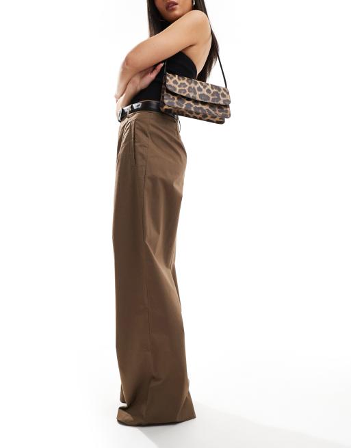 ASOS DESIGN - Pantaloni a fondo ampio color cuoio con cintura