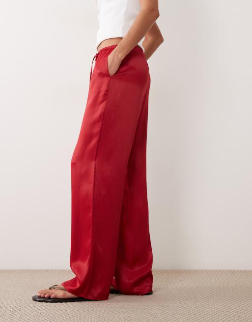 ASOS DESIGN - Pantaloni a fondo ampio in raso rossi