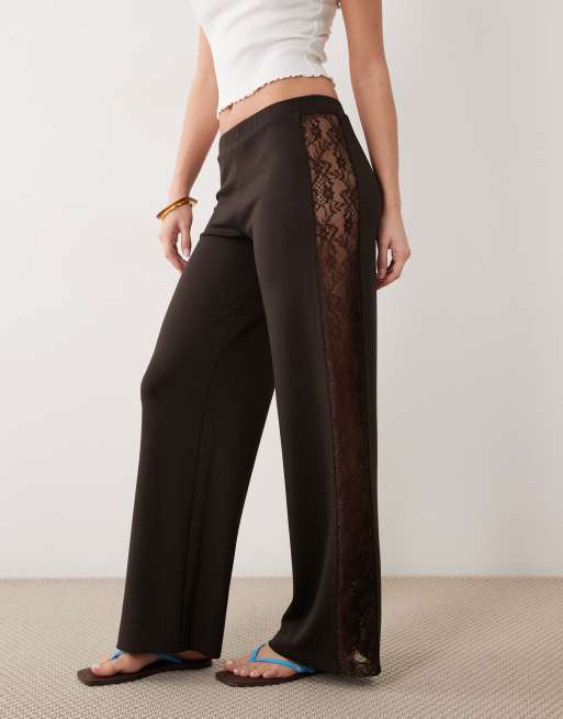 ASOS DESIGN - Pantaloni a fondo ampio marroni con pannello in pizzo