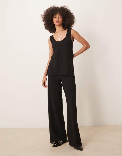 ASOS DESIGN - Pantaloni a fondo ampio neri morbidi al tatto in coordinato