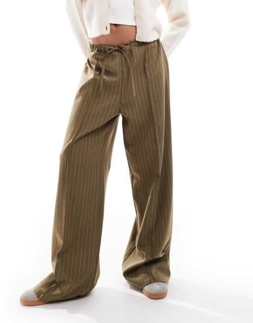 ASOS DESIGN - Pantaloni a fondo ampio verde oliva con motivo gessato