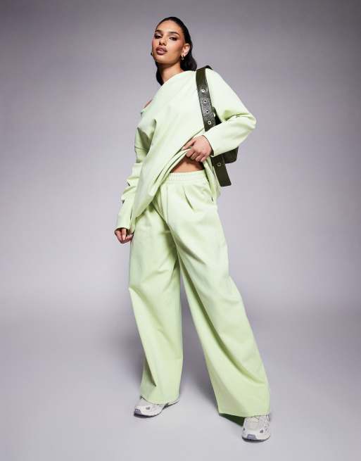 ASOS DESIGN - Pantaloni a fondo super ampio in interlock verde pastello in coordinato