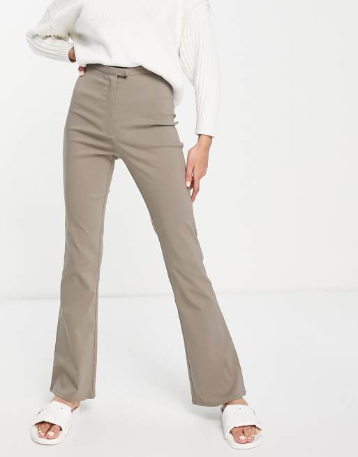 ASOS DESIGN - Pantaloni a zampa elasticizzati in bengalina color fungo