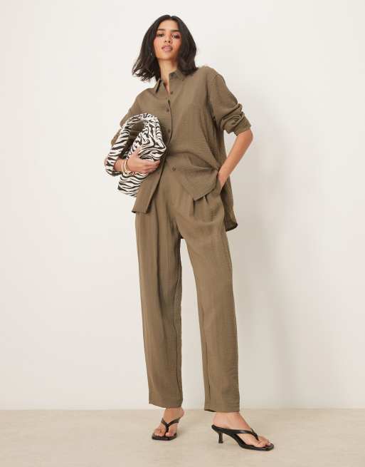 ASOS DESIGN - Pantaloni affusolati con linguetta in vita kaki in coordinato