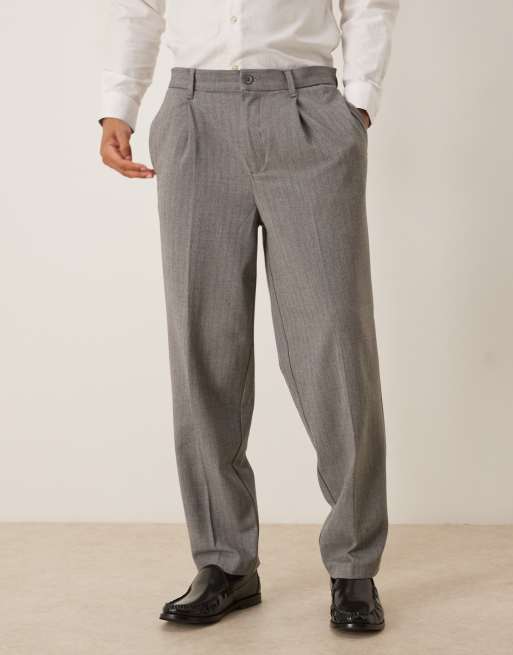 ASOS DESIGN - Pantaloni affusolati oversize grigi effetto lana con pieghe