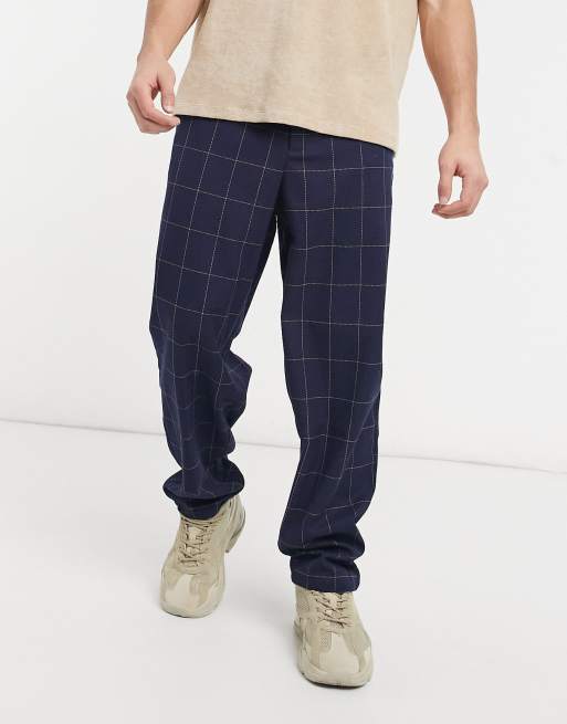ASOS DESIGN - Pantaloni ampi blu navy a quadri larghi