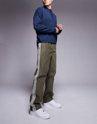 ASOS DESIGN - Pantaloni ampi verdi in velluto a coste con riga laterale