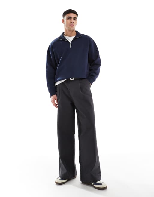 ASOS DESIGN - Pantaloni antracite super ampi a pieghe con cintura