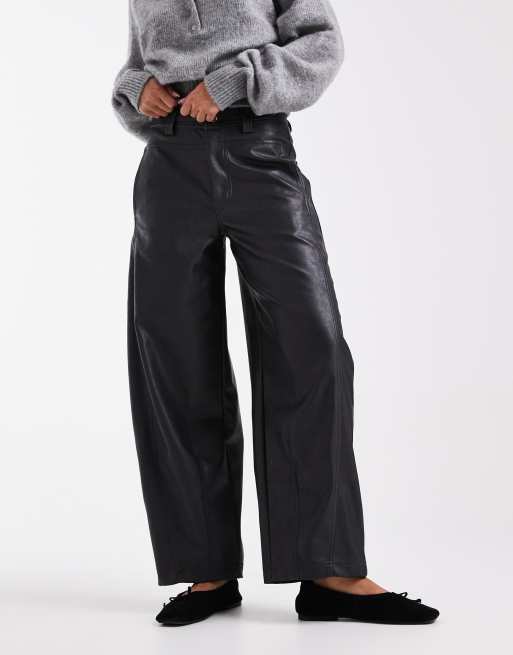 ASOS DESIGN - Pantaloni bombati in pelle sintetica color blu navy con cuciture a vista