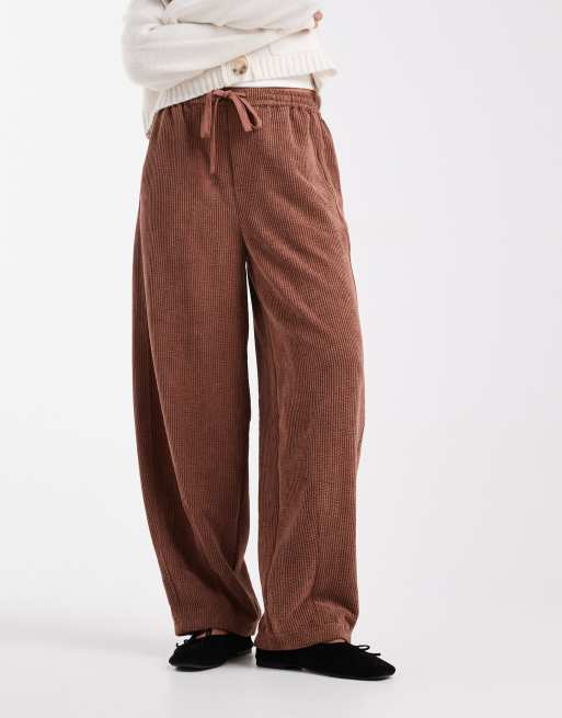 ASOS DESIGN - Pantaloni bombati in tessuto a coste color cioccolato