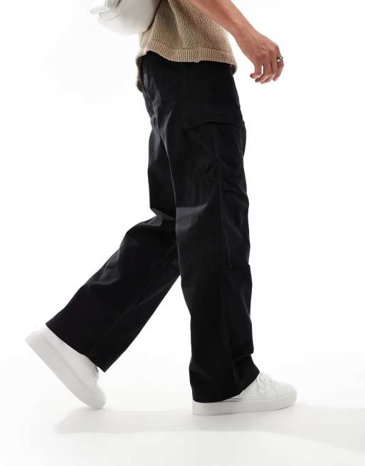 ASOS DESIGN - Pantaloni cargo ampi neri con pieghe sulle ginocchia