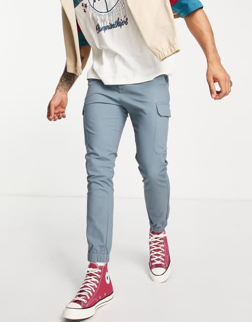 ASOS DESIGN - Pantaloni cargo skinny con fondo elasticizzato blu
