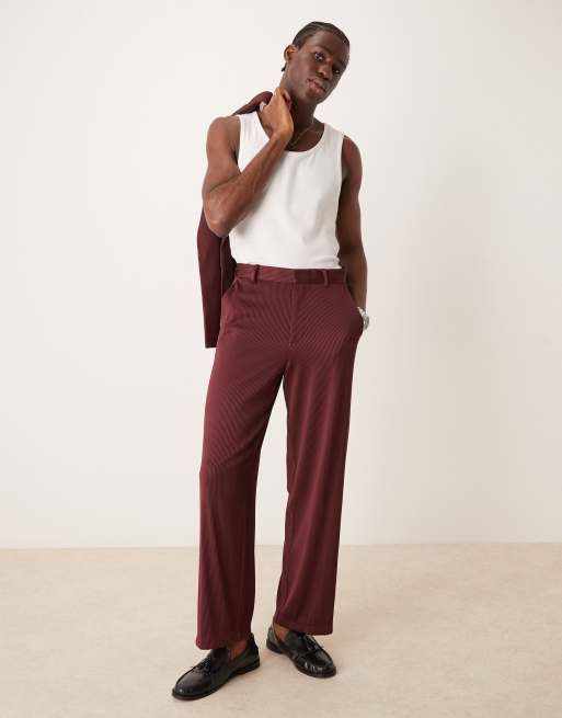 ASOS DESIGN - Pantaloni da abito a fondo ampio bordeaux a coste