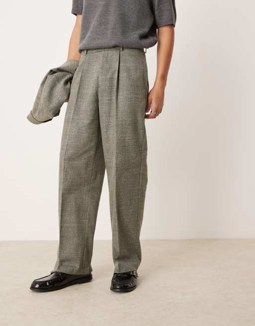 ASOS DESIGN - Pantaloni da abito a vita alta e fondo ampio con piega frontale in tweed verde