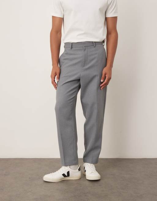 ASOS DESIGN - Pantaloni da abito affusolati grigi in lana con motivo gessato