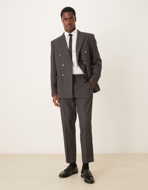ASOS DESIGN - Pantaloni da abito affusolati in twill spazzolato grigio antracite