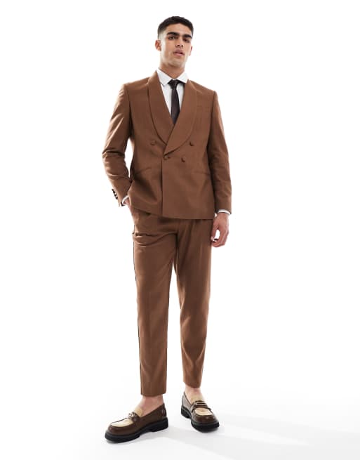 ASOS DESIGN - Pantaloni da abito affusolati marroni in misto lino e cotone