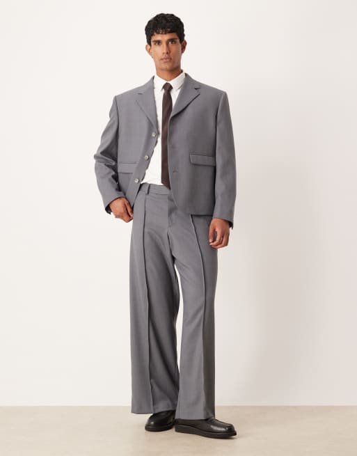 ASOS DESIGN - Pantaloni da abito ampi grigi in twill