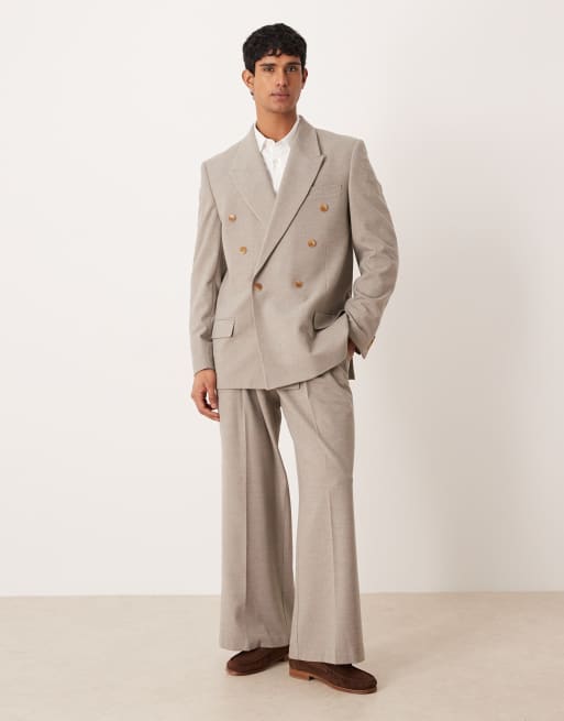 ASOS DESIGN - Pantaloni da abito con fondo ampio beige in flanella