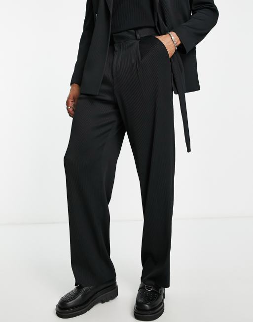 ASOS DESIGN - Pantaloni da abito con fondo ampio neri plissé