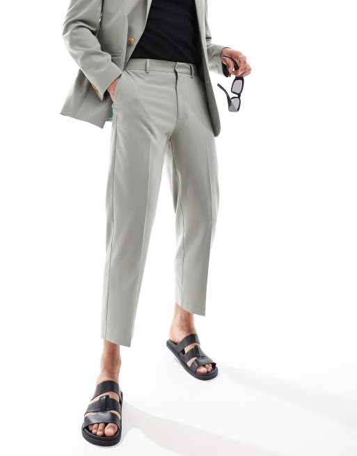 ASOS DESIGN - Pantaloni da abito corti dritti verde salvia