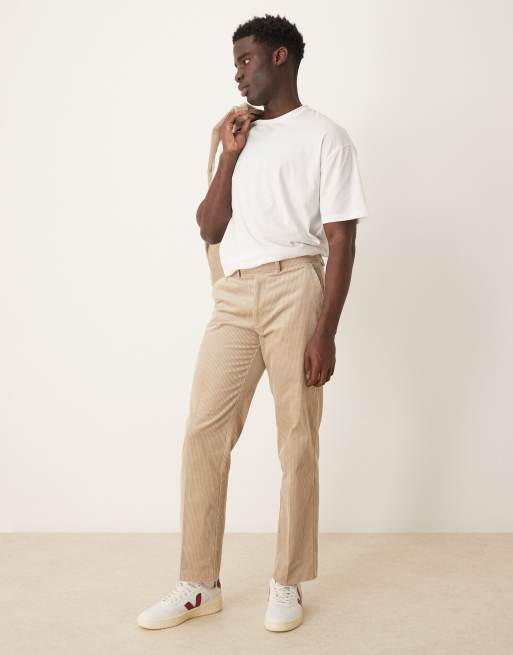 ASOS DESIGN - Pantaloni da abito dritti color pietra in velluto a coste