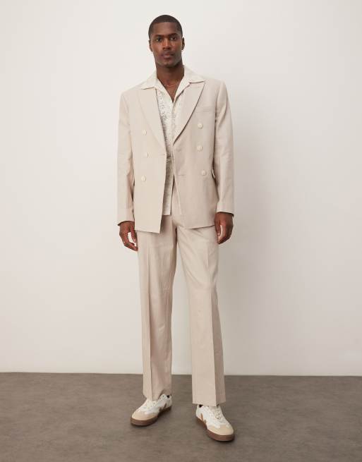 ASOS DESIGN - Pantaloni da abito dritti in misto lino color pietra