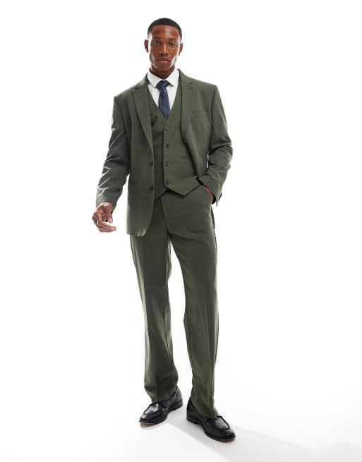 ASOS DESIGN - Pantaloni da abito dritti verde scuro