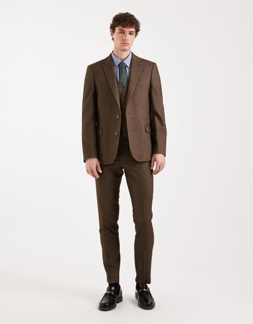 ASOS DESIGN - Pantaloni da abito skinny effetto lana marroni