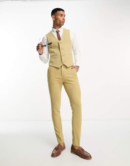 ASOS DESIGN - Pantaloni da abito skinny in misto lana a spina di pesce color pietra