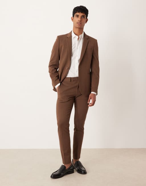 ASOS DESIGN - Pantaloni da abito skinny in twill marrone