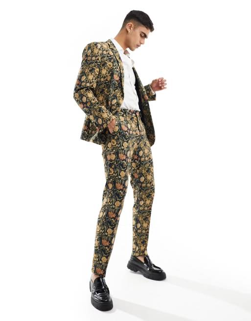 ASOS DESIGN - Pantaloni da abito slim blu navy a fiori