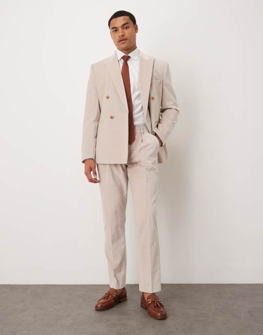 ASOS DESIGN - Pantaloni da abito slim in velluto di cotone leggero color pietra con pieghe sul davanti