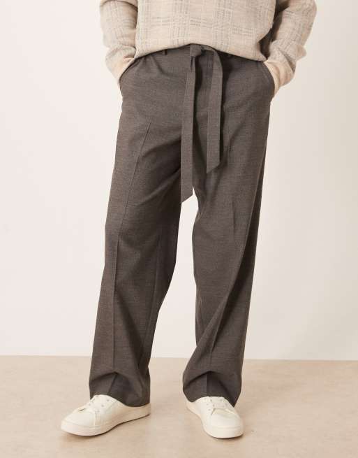 ASOS DESIGN - Pantaloni eleganti a fondo ampio con cintura con motivo a spina di pesce grigi