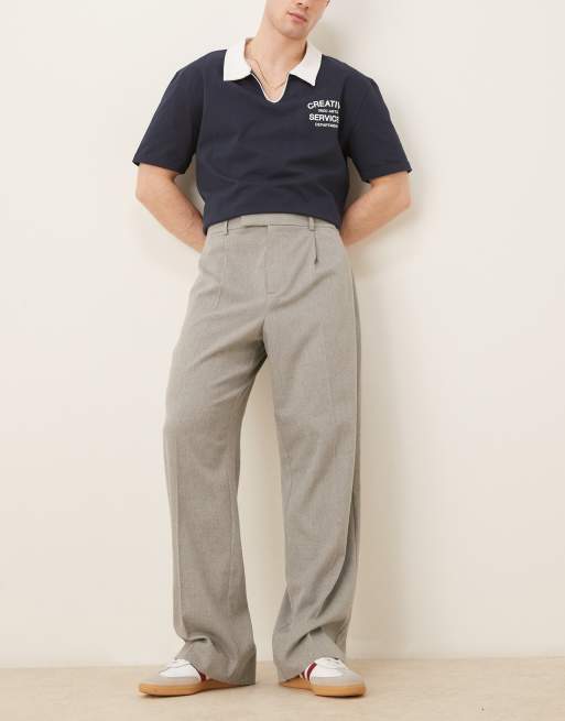 ASOS DESIGN - Pantaloni eleganti a fondo ampio effetto lana color grigio chiaro con pieghe sul davanti e vita elasticizzata