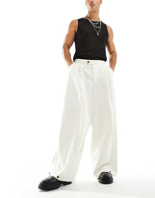 ASOS DESIGN - Pantaloni eleganti a fondo super ampio écru testurizzati