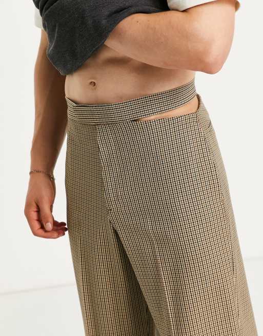 ASOS DESIGN - Pantaloni eleganti a vita alta e fondo ampio marroni a quadretti con cut-out