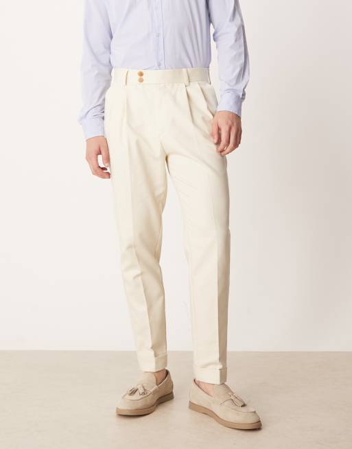 ASOS DESIGN - Pantaloni eleganti affusolati beige con bottoni a vista