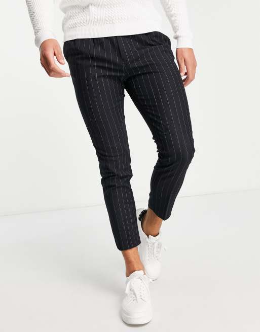 ASOS DESIGN - Pantaloni eleganti affusolati blu navy a righe