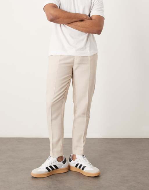 ASOS DESIGN - Pantaloni eleganti affusolati in misto lana color pietra con pieghe sul davanti