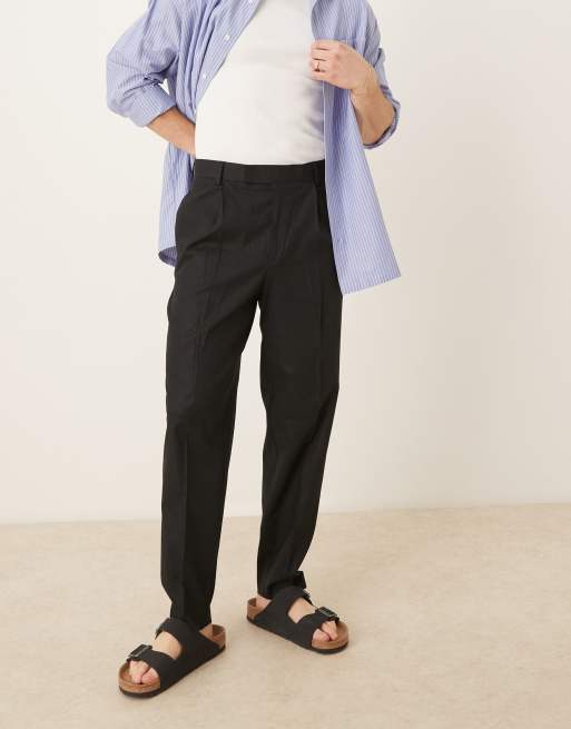 ASOS DESIGN - Pantaloni eleganti affusolati vestibilità comoda in misto lino neri con pieghe sul davanti