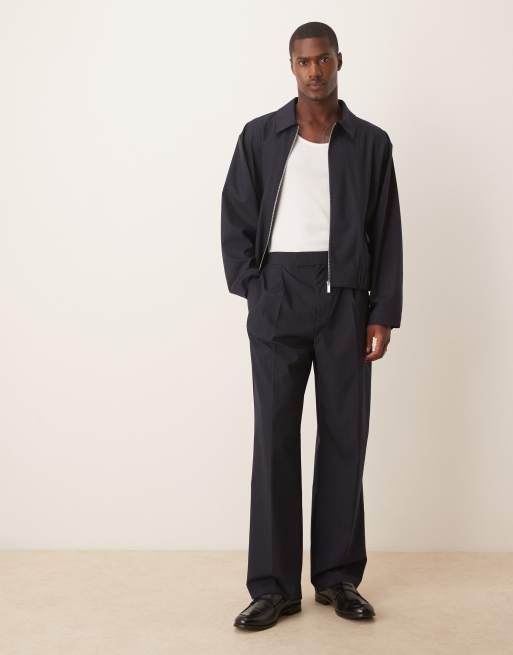 ASOS DESIGN - Pantaloni eleganti ampi blu navy con motivo gessato e vita elasticizzata in coordinato