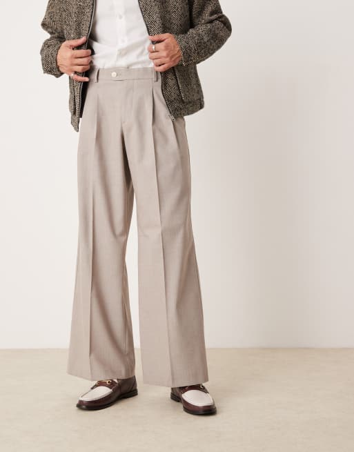 ASOS DESIGN - Pantaloni eleganti ampi color pietra con motivo a spina di pesce