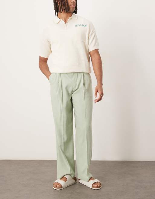 ASOS DESIGN - Pantaloni eleganti microtesturizzati a fondo ampio verde chiaro