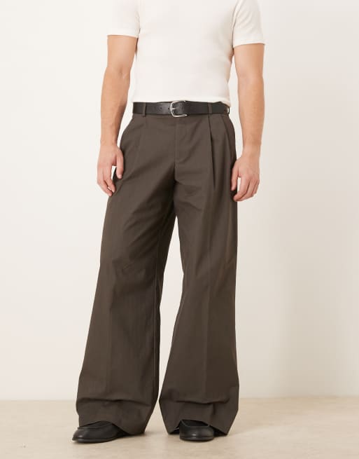 ASOS DESIGN - Pantaloni eleganti pesanti in misto cotone ampi marroni con motivo a spina di pesce