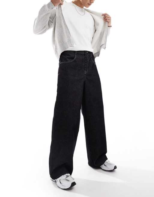 ASOS DESIGN - Pantaloni extra ampi neri con cuciture a contrasto