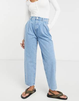 ASOS DESIGN - Pantaloni in denim di misto cotone con piega frontale lavaggio chiaro - MBLUE