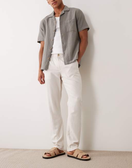 ASOS DESIGN - Pantaloni in misto lino color pietra