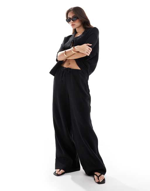 ASOS DESIGN - Pantaloni in mussola neri allacciati in vita